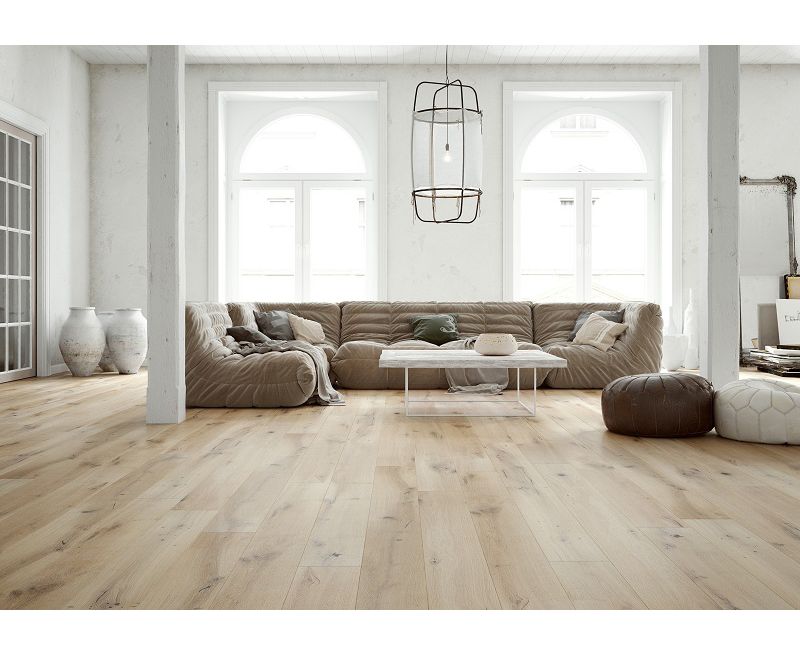 Drewno desek Ivory Grande ma mocno podkreśloną szczotkowaniem strukturę oraz zaznaczone fazowaniem krawędzie. Całość subtelnie barwiona, uszlachetniona olejem naturalnym.